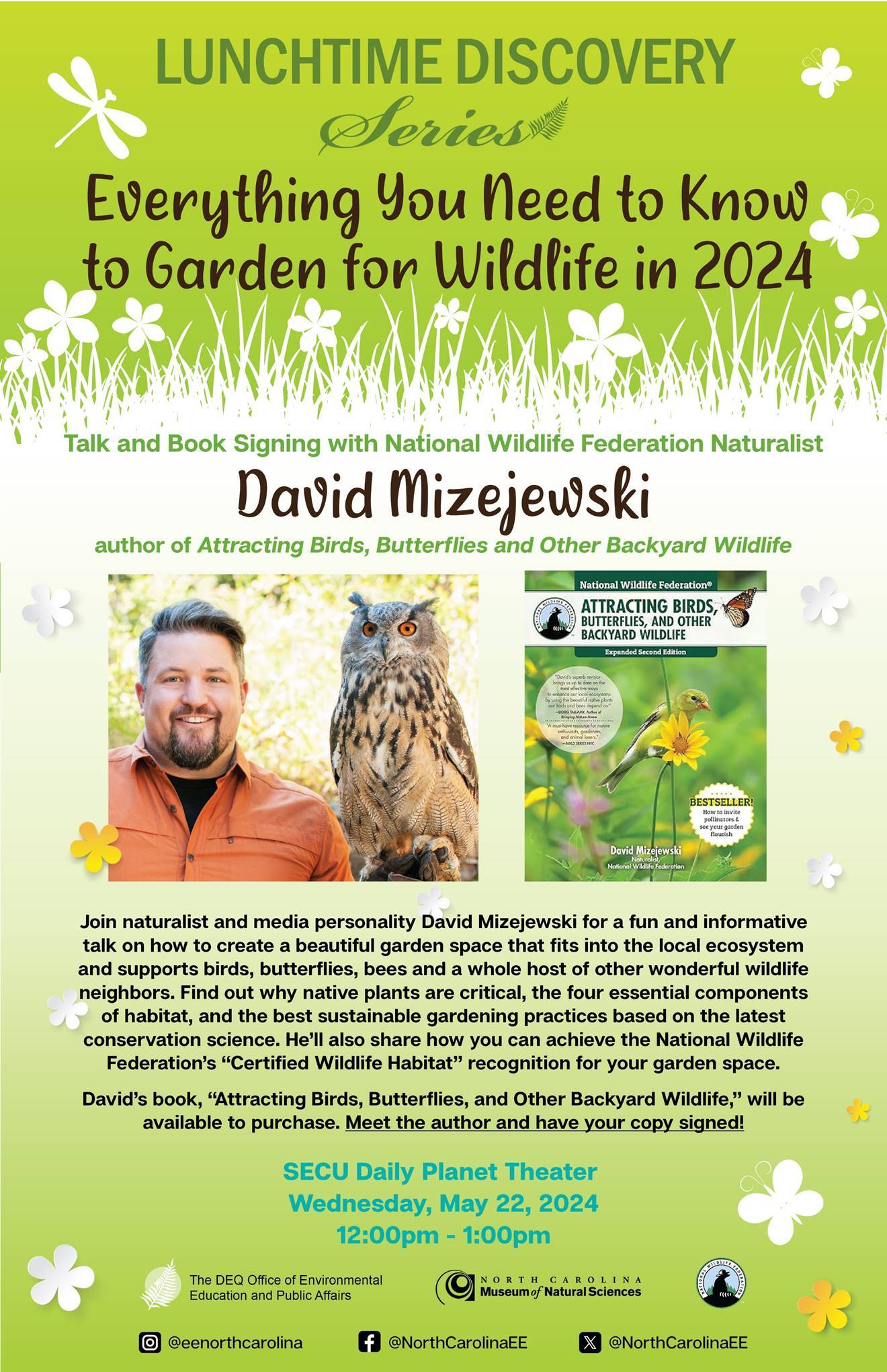 Talk and Book Signing with National Wildlife Federation Naturalist, David Mizejewski, author of Attracting Birds, Butterflies and Other Backyard Wildlife